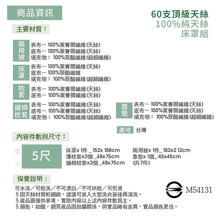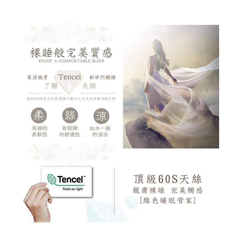 ★材質: 表布:100%萊賽爾纖維(天絲) 底布─100%萊賽爾纖維(天絲) 填充物─100%聚酯纖維(超細纖維)