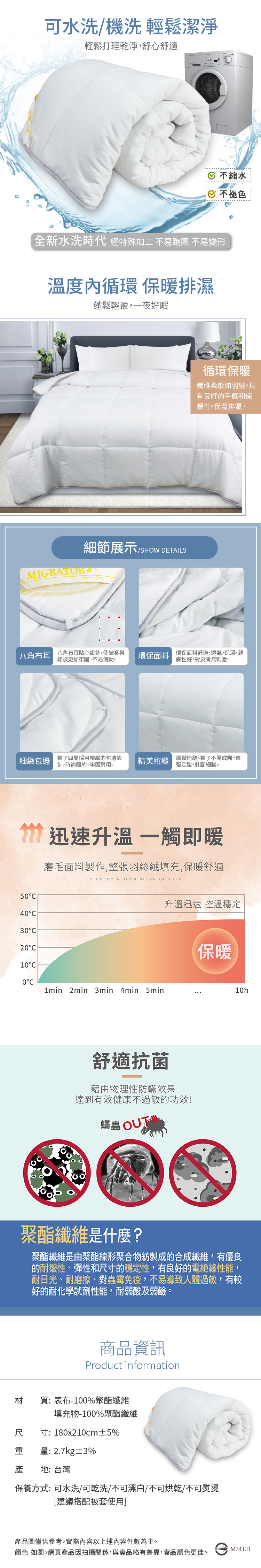 ★內容件數:新科技抗菌羽絲絨太空恆溫可水洗被*1