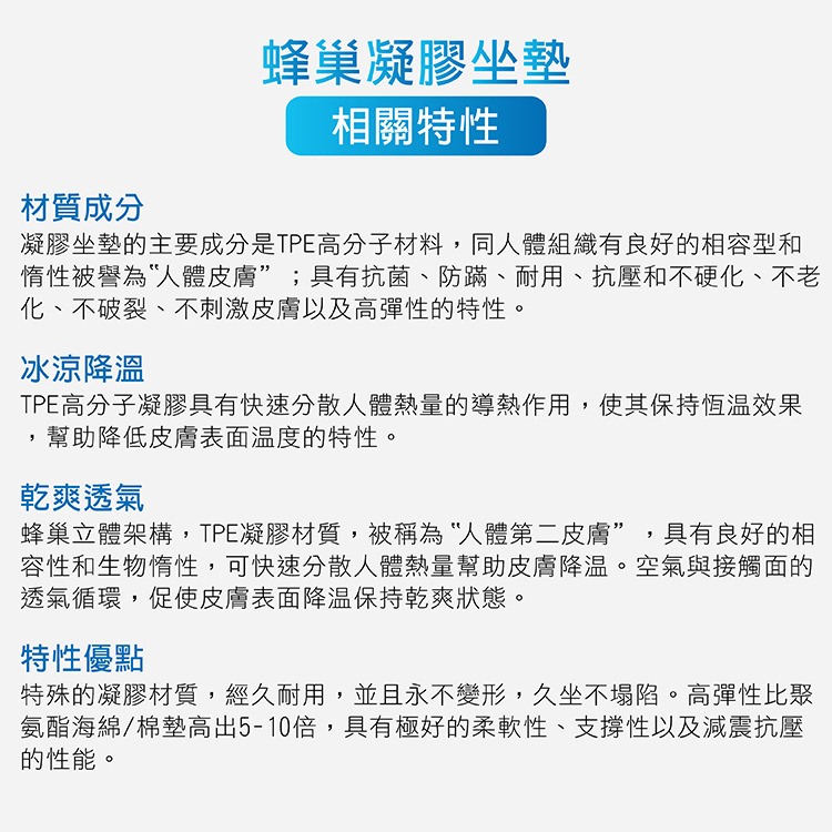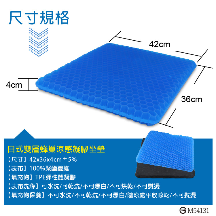 日式雙層蜂巢涼感凝膠坐墊*1件-42*36*4cm±5%