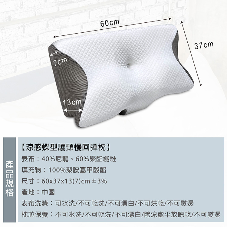 .內容件數:涼感蝶型護頸慢回彈枕*1