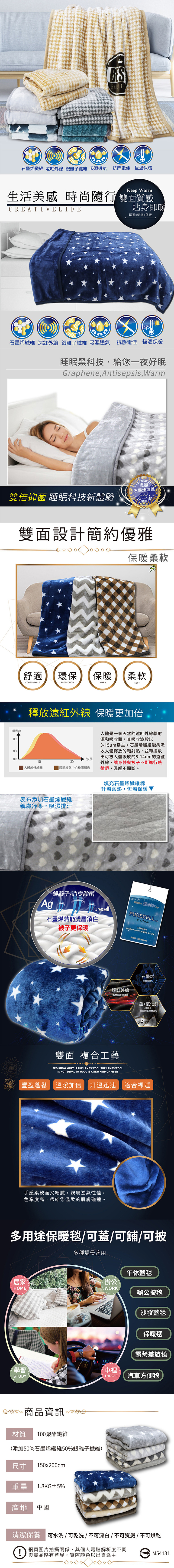 ★內容件數與尺寸: 數量:石墨烯銀離子發熱雙層毯x1件 重量1.8公斤 尺寸:150x200cm