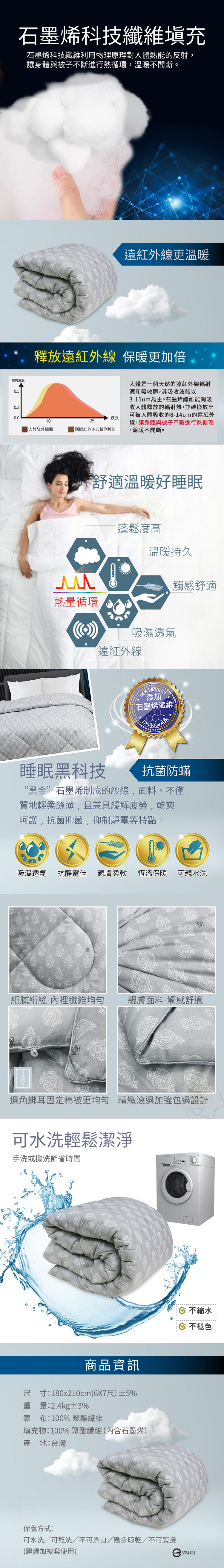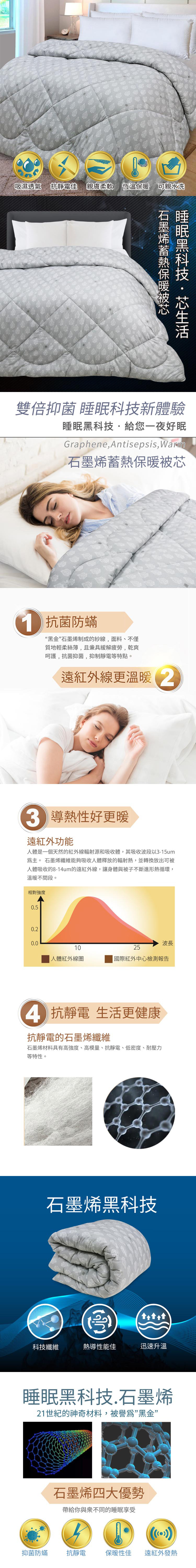 石墨烯纖維中含有自然礦物質,能把身體紅外線有效反射到被窩,達到恆溫效果