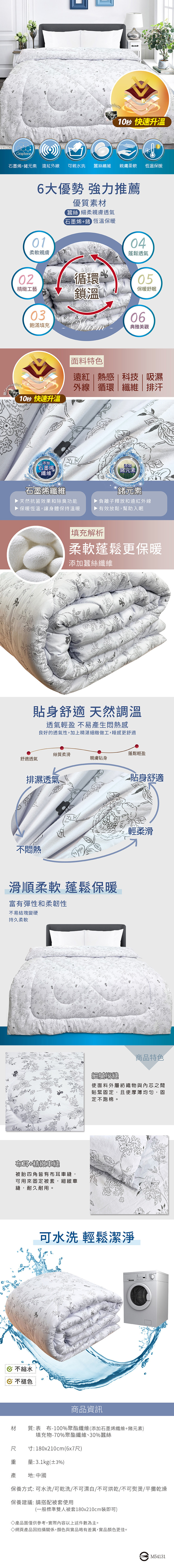 石墨烯雙人抗菌可水洗蠶絲被x1件- 180x210cm