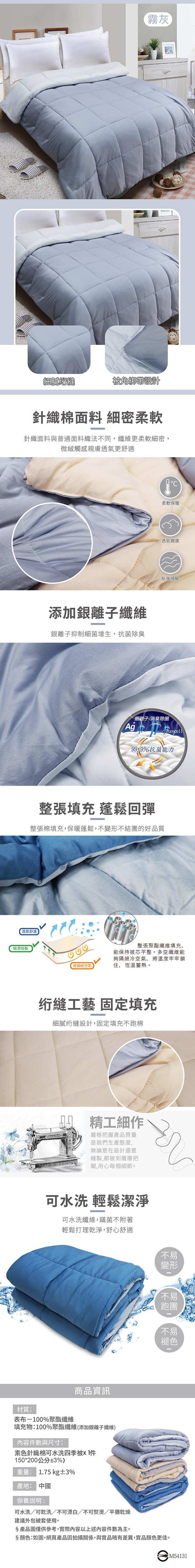 ★內容件數:素色針織棉可水洗四季被*1件