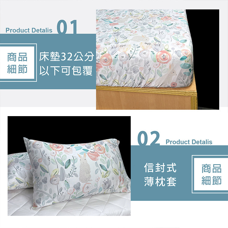 【雙人】鋪棉兩用被套*1件-6x7尺(182x212cm) 、床包*1件-5x6.2尺(152x188cm)、薄枕套*2個 (48x75cm)