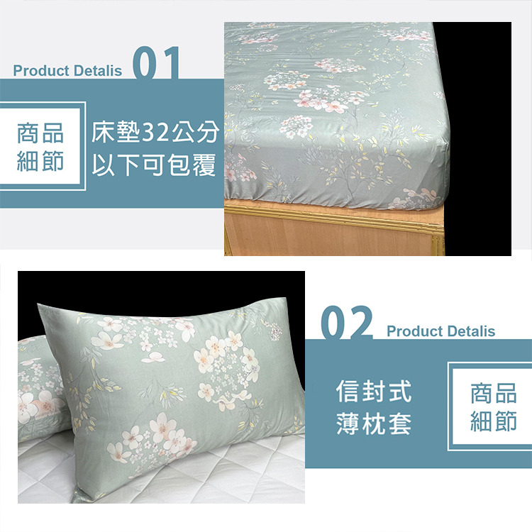 【加大】鋪棉兩用被套*1件-6x7尺(182x212cm) 、床包*1件-6x6.2尺(182x188cm)、薄枕套*2個 (48x75cm)