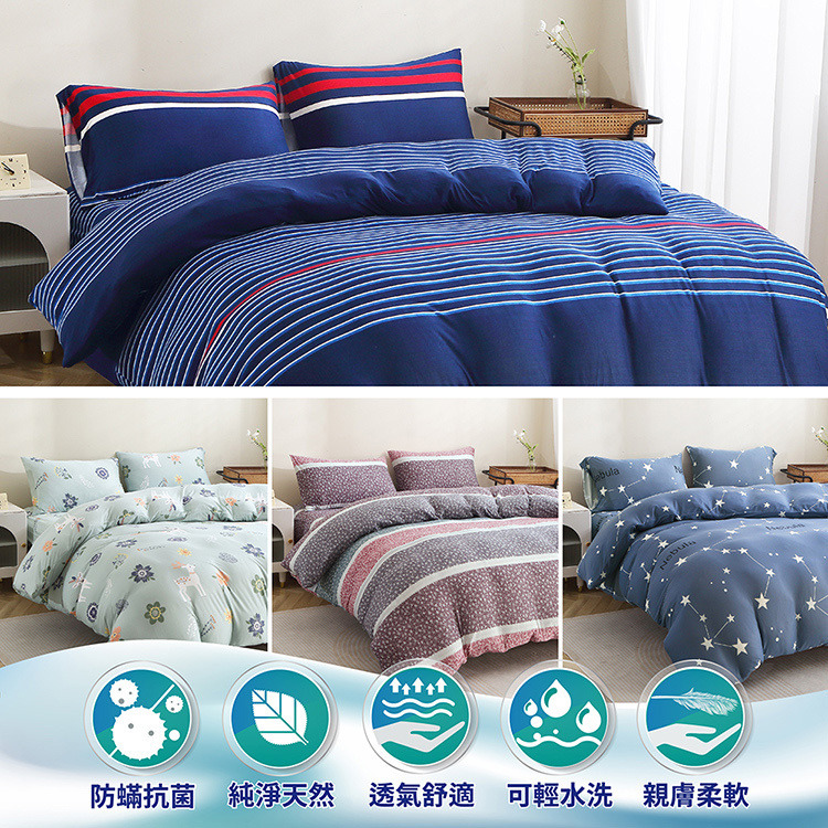 ◆【雙人】床包x1件-5x6.2尺(150x186cm) 、枕套x2個(45x74cm)、兩用被套x1件-6x7尺 (180x210cm)