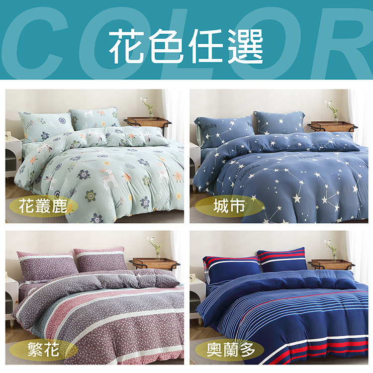 ◆【加大】床包x1件-6x6.2尺(180x186cm) 、枕套x2個(45x74cm)、兩用被套x1件-6x7尺 (180x210cm)