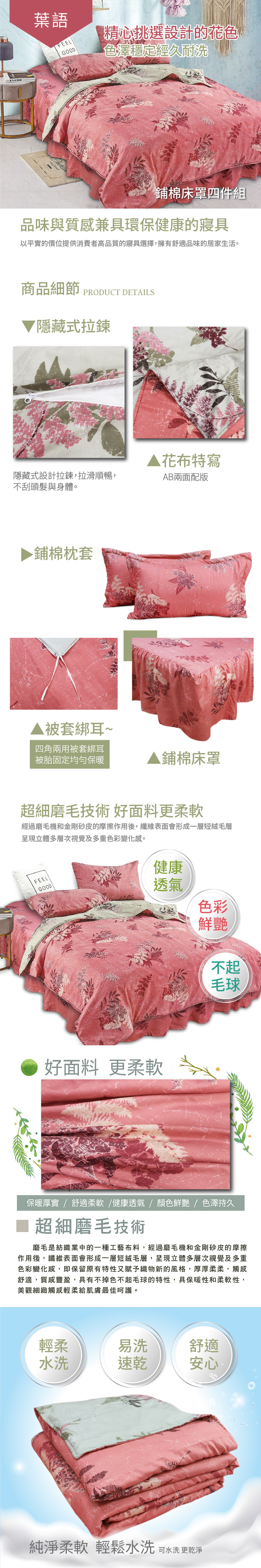 【Victoria】柔絲絨抗菌床罩四件組-葉語(雙人/加大)