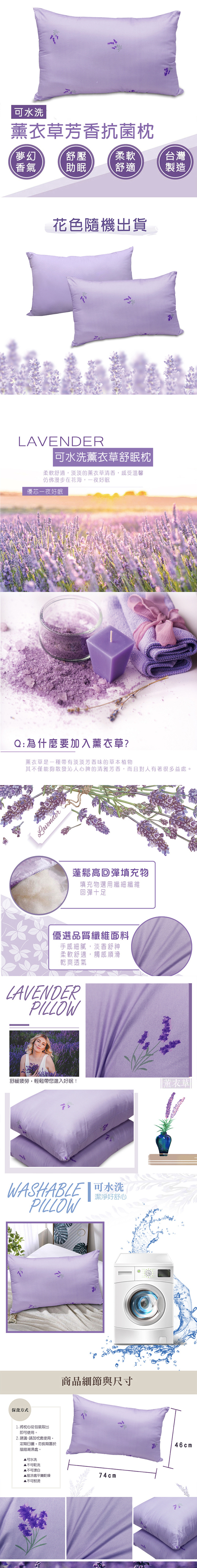 可水洗薰衣草舒眠枕x2-尺寸:45*74公分