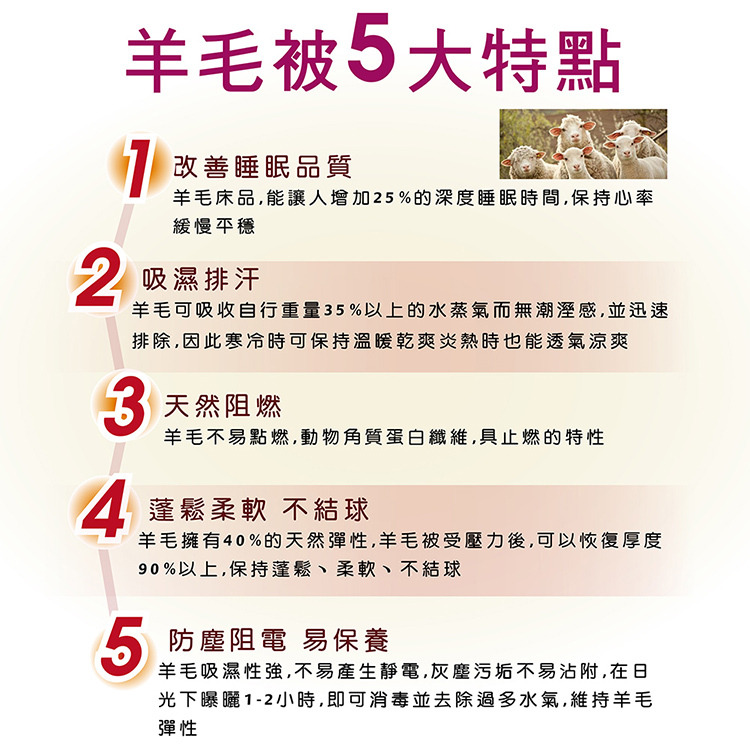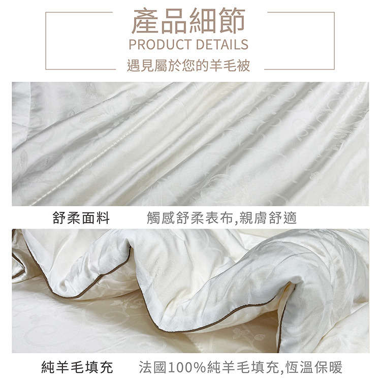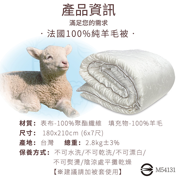 ★內容件數與尺寸: 法國100%純羊毛被X1件-6x7尺(180x210cm)