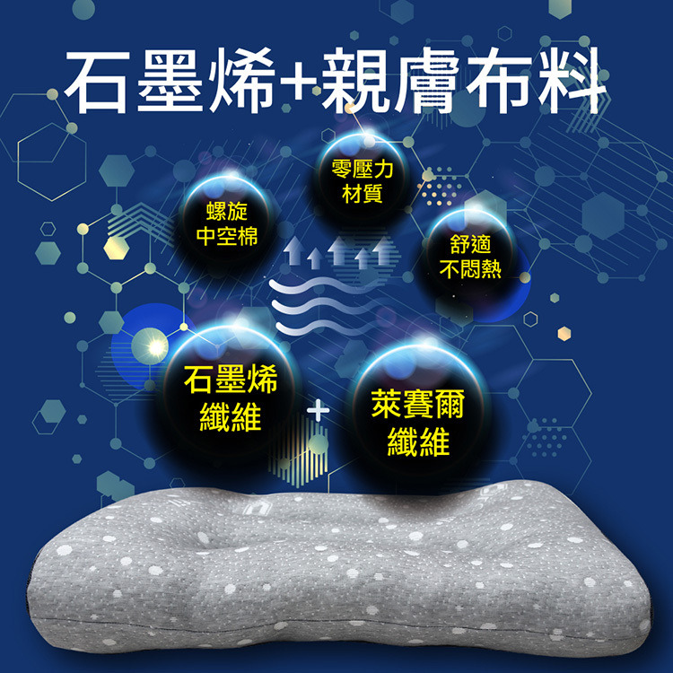 ★材質: 表布─88%聚酯纖維(添加石墨烯纖維) 12%萊賽爾纖維(透氣網布) 填充物─100%聚酯纖維(添加石墨烯纖維) ★內容件數與尺寸:超導石墨烯止鼾枕*1件-70x38cm ±3% ★產地:台灣 ★網頁圖片因拍攝關係,與實品略有差異,實際顏色以出貨為主 ★產品圖僅供參考,實際內容以上述內容件數為主。 ★清潔保養方式:可手洗╱不可乾洗╱不可漂白╱平放乾燥╱不可熨燙 ★建議:請外加枕套使用平常保養可日曬通風