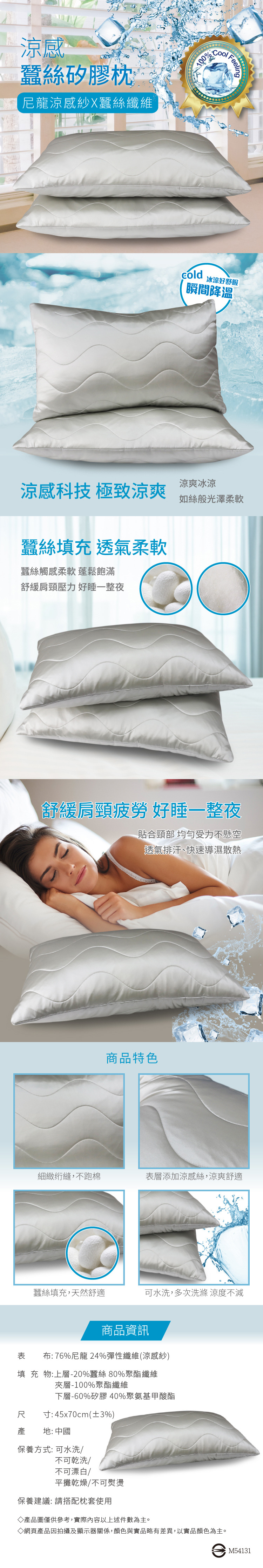 ★內容件數與尺寸:涼感蠶絲矽膠枕*1件-45x70cm ±3%