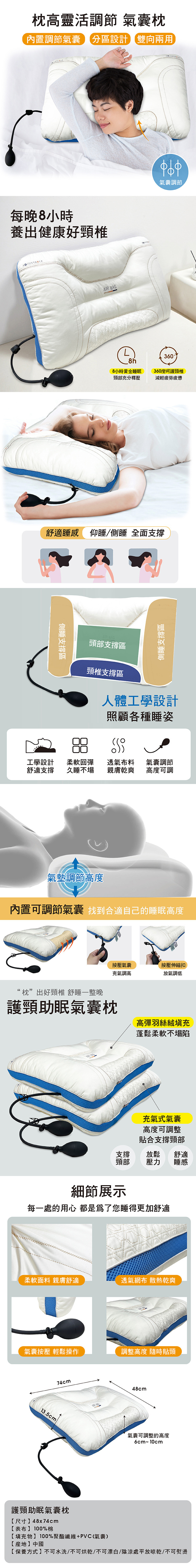 ‧內容件數與尺寸:護頸助眠可調式氣囊枕x1顆-48*74cm±5%