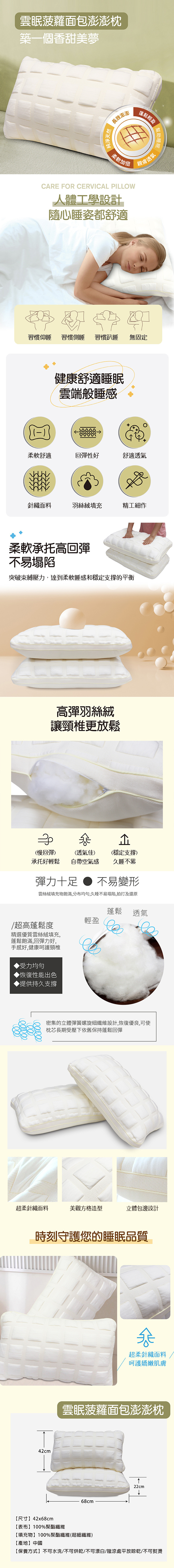 ‧內容件數與尺寸:雲眠波蘿面包針織澎澎枕x1顆-42x68cm±5%