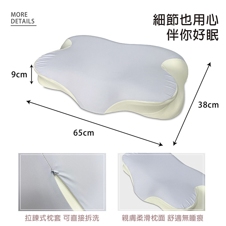 .枕芯保養:不可水洗╱不可乾洗╱不可漂白╱陰涼處平放晾乾╱不可熨燙