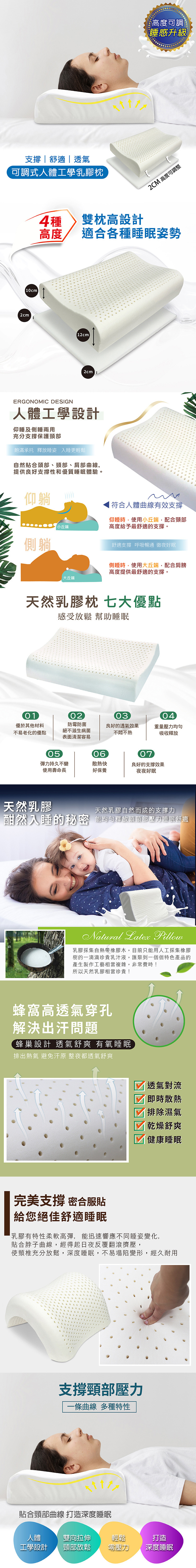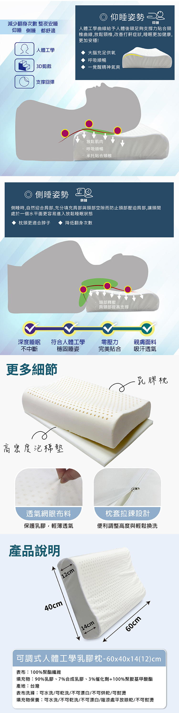 可調式人體工學乳膠枕*1件-60x40x14/(12)cm ±5%